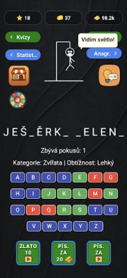 Otestujte své dedukční schopnosti v režimu Oběšenec, kde na vás čeká přes 10 000 slov rozdělených do deseti poutavých tematických kategorií – od zeměpisu po technologie a zvířata. S třemi úrovněmi obtížnosti si každý najde tu pravou výzvu. Za každé správně uhodnuté slovo získáváte body, zlato a mince, které vám pomohou stoupat po úrovních a odemykat další obsah. Pokud se ocitnete v úzkých, využijte nápovědy, které lze získat zhlédnutím reklamy nebo za zlato. Pro ty, kteří hledají rychlý přísun odměn a mentální rozcvičku, je tu režim Anagramy, kde odhalujete skrytá slova z popletených písmen – za každých deset správně vyluštěných získáte štědré bonusy v podobě mincí a zlata.