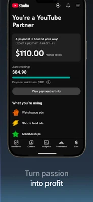 Flexibilita je klíčová pro každého tvůrce. S touto aplikací snadno aktualizujte informace u svých videí, videí Shorts i živých přenosů, upravujte vzhled svého kanálu a spravujte svůj obsah s bezprecedentní lehkostí. A pro ty, kteří chtějí posunout svou vášeň na další úroveň, náš nástroj otevírá dveře k podnikání na YouTube. Připojte se k Partnerskému programu YouTube přímo z aplikace a odemkněte možnosti zpeněžení, čímž proměníte svou kreativitu ve skutečný příjem.