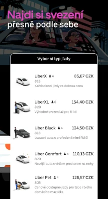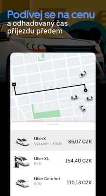 Ať už hledáte ekonomickou variantu, prostor pro celou skupinu, nebo cestu s nádechem luxusu, Uber nabízí rozmanitou škálu vozidel, která se přizpůsobí vašim specifickým požadavkům. Získejte plnou kontrolu nad svými výdaji: ještě před potvrzením jízdy vždy uvidíte předpokládanou cenu. Tímto způsobem odpadají veškeré dohady a máte jistotu, kolik za své svezení zaplatíte. Plánujte své cesty s předstihem, nebo vyrazte okamžitě – volba je na vás.