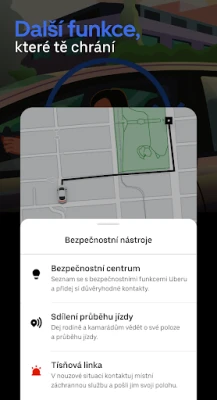 Vaše bezpečnost je pro Uber prioritou. Proto jsme zavedli přísné bezpečnostní standardy a neustále inovujeme funkce i komunitní pravidla, aby každá jízda byla nejen příjemná, ale i maximálně bezpečná a ohleduplná. Pro váš klid můžete snadno sdílet aktuální průběh jízdy se svými blízkými, aby vždy věděli, kde se nacházíte. V případě potřeby je navíc přímo z aplikace možné kontaktovat tísňovou linku, přičemž aplikace automaticky zobrazí klíčové informace o vaší poloze pro rychlou komunikaci. Po každém svezení máte možnost ohodnotit řidiče a podělit se o zpětnou vazbu, a pokud jste byli s cestou spokojeni, můžete mu pohodlně zanechat spropitné.