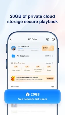 Pro komplexní správu vašeho digitálního života nabízí UC Browser velkorysých 20 GB cloudového úložiště. Bezpečně si uložte své soubory, videa a veškerý obsah a získejte k nim přístup z jakéhokoli zařízení. Udržujte své digitální prostředí uspořádané a přístupné, ať už jste kdekoli. S UC Browser získáváte nejen rychlý a bezpečný prohlížeč, ale také inteligentního společníka pro každodenní online aktivity, který optimalizuje váš digitální život, šetří data a zaručuje bezstarostné prozkoumávání internetu.