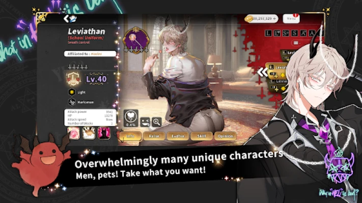 Ponořte se do poutavého příběhu plného démonů a andělů, zasazeného do propracovaného magického světa inspirovaného Šalamounovými klíči. Před vámi se rozprostírá více než 100 unikátních příběhů a přes 100 dynamických úrovní, kde se setkáte s nespočtem pekelných i nebeských bytostí. Užijte si hlavní dějovou linku s kompletním hlasovým doprovodem od špičkových herců a obdivujte vizuály světové kvality. Objevte postavy, které můžete skutečně dotýkat, hladit a interagovat s nimi, a prožijte bitvy s roztomilými ilustracemi, které rozhodně nejsou strašidelné. Osud všech vesmírů závisí na tom, kdo bude korunován králem – poslední pokušení právě začíná.